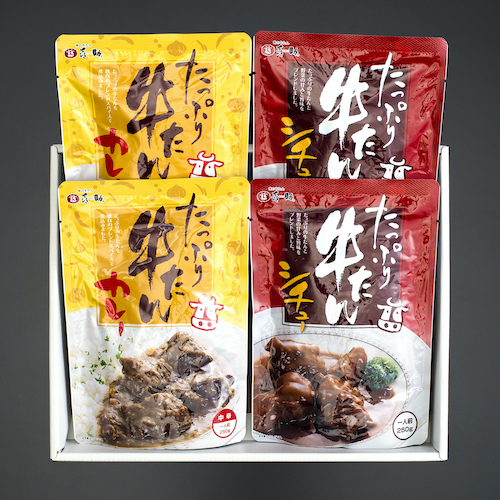 【詰合せ内容】たっぷり牛たんカレー250g×2パック・たっぷり牛たんシチュー250g×2パック