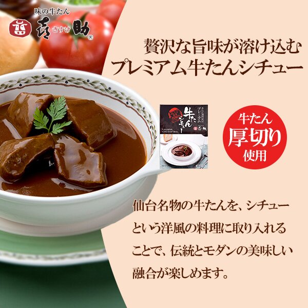 厚切り牛たんを野菜とワインでコトコト煮込んだ上品な本格シチュー。化学調味料は一切使っておりません。牛たんも、牛たん焼きとしてお店でご賞味いただいている柔らかく味のある部分を使い、牛たん専門店ならではの味わいを追求した、ちょっと贅沢なコクのある、ワンランク上の味わいです。