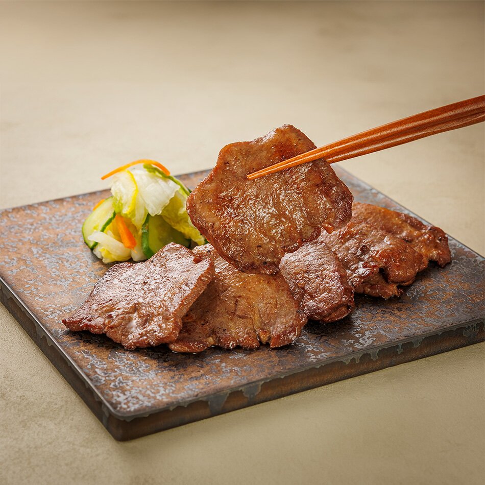●たれ味:醤油ベースにワインや味噌をブレンドした特製たれに漬け込んだ、マイルドな味わいの牛たんです。