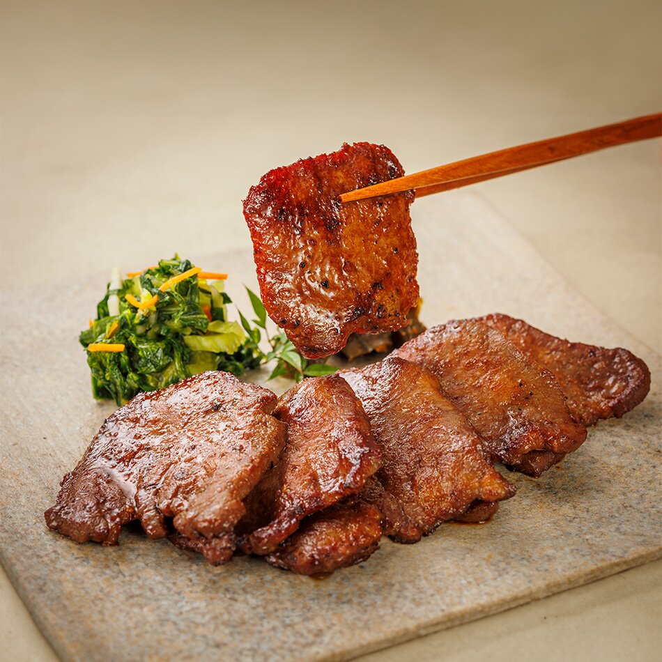 ●たれ味:醤油ベースにワインや味噌をブレンドした特製たれに漬け込んだ、マイルドな味わいの牛たんです。