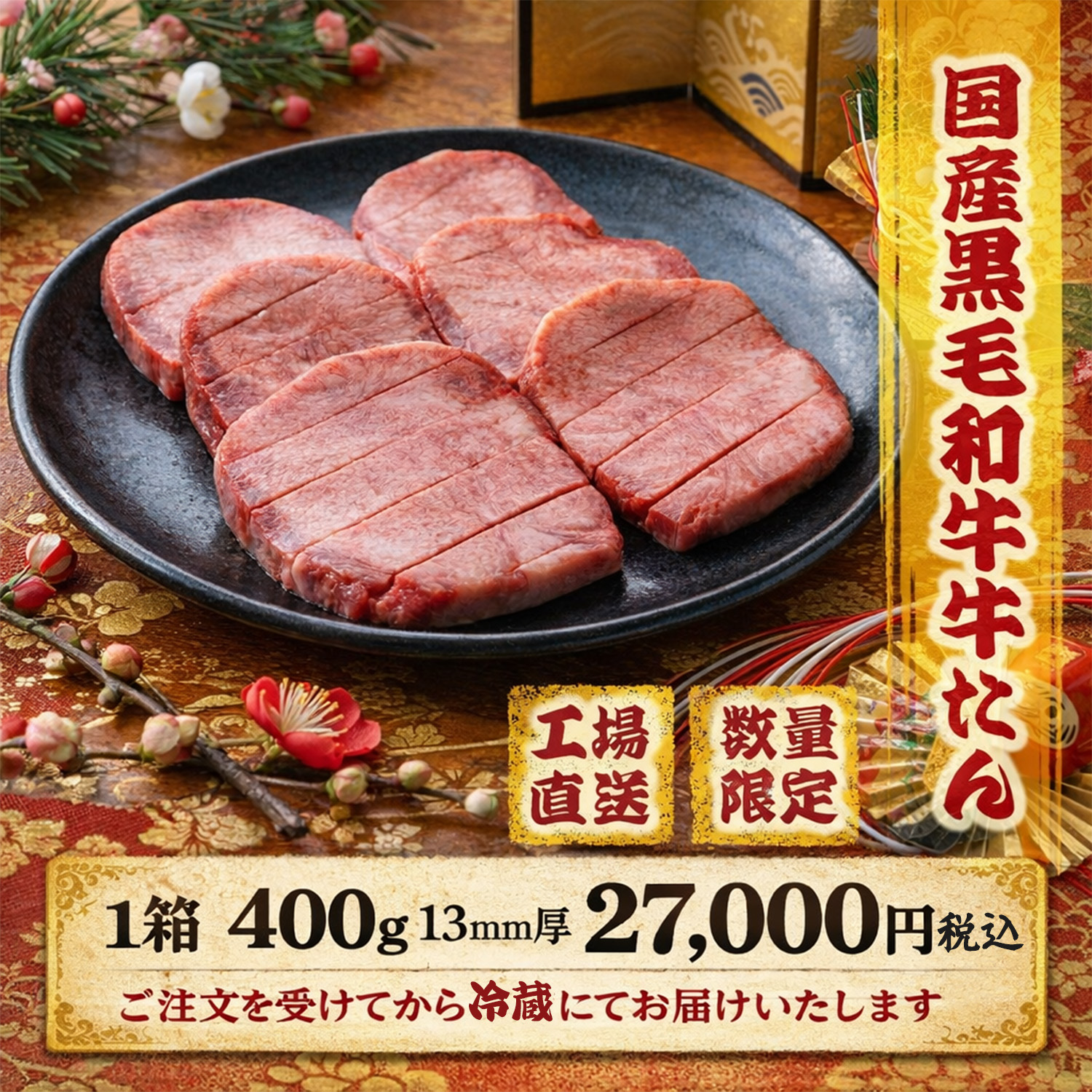 市場にほとんど出回らない、希少な国産黒毛和牛の霜降り牛たんを使用した特別商品です。