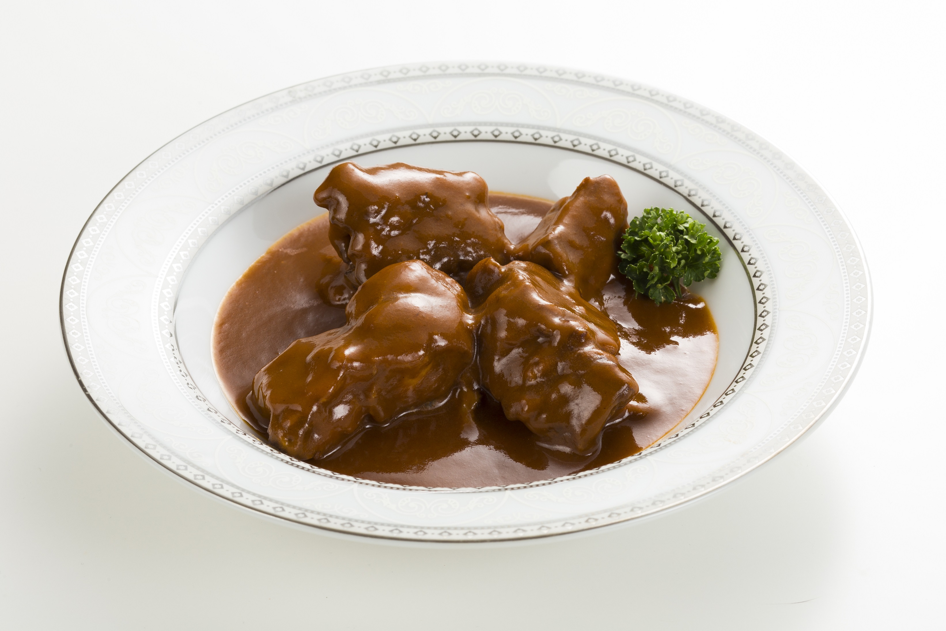 【原材料名】牛たん、トマトペースト、小麦粉、ビーフエキス、砂糖、動物油脂、ワイン調製品、たまねぎエキス、精製はちみつ、たん白加水分解物、酵母エキス、でん粉、バター、食塩、香辛料、調味料(アミノ酸等)、(一部に大豆、豚肉を含む)